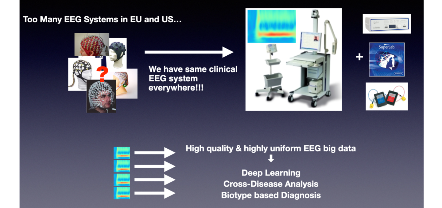 Recently, large-sample collaborative studies are becoming crucial to characterize healthy and clinical population groups in psychiatric research. Importantly, multicenter studies may also greatly benefit from adapting statistical models correcting for the effects of each site. It should be noted that by taking advantage of the fact that only one EEG company (Nihon Kohden) is approved for clinical use in Japan, we can conduct large-sample collaborative EEG studies using the same or very similar EEG systems (with the same stimulus presentation, recording environment, and data collection procedures) in Japan.